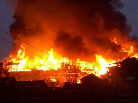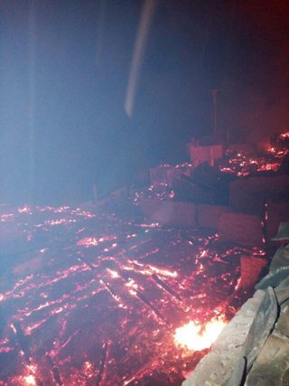 现场火势迅速扩大,绵延半座山寨。