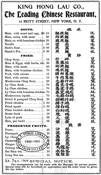 1900年美国中餐馆的菜单,其中有好几份“杂碎”。