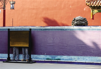 场景:小男孩们和石狮子在“捉迷藏”。新京报记者 浦峰 摄
