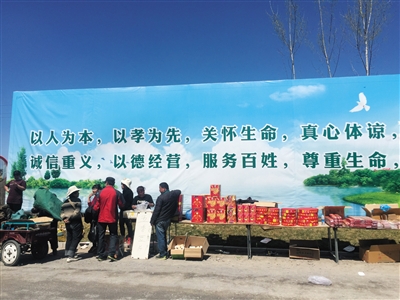 陵园外的摊位上摆满祭祀用的鞭炮、香纸等物品。本版摄影/新京报记者 吴为