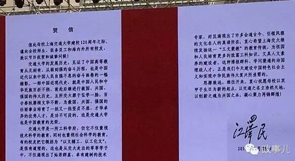 “政事儿”(微信ID:gcxxjgzh)注意到,江泽民1947年毕业于上海交通大学电机系,他对母校有很深的感情,不仅先后十多次到访过上海交大,而且对当年的老师很关切,还多次邀请老同学叙旧,连自己的金婚纪念日都邀请老同学来见证。