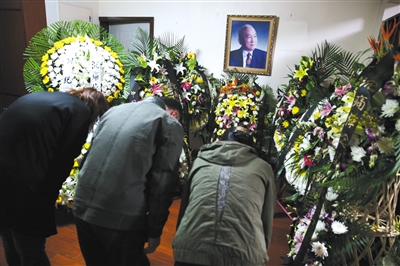 昨日,梁思礼院士家摆着他的遗像,亲朋及同事前来悼念。新京报记者 尹亚飞 摄