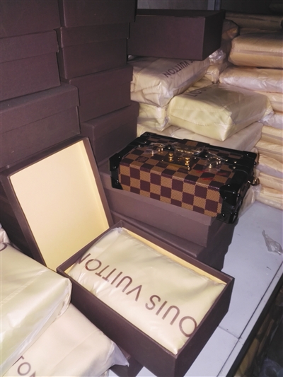现场在仓库查获的假冒LV制品。