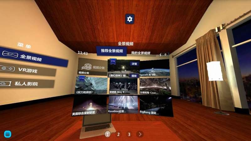 值得一提的是,脑穿越VR在交互操控上做了不少优化,例如利用“视觉准心+陀螺仪”的操控方式,使得用户只需要头部转动来控制画面中的准心,停留3秒就能直接下载或者打开内容。