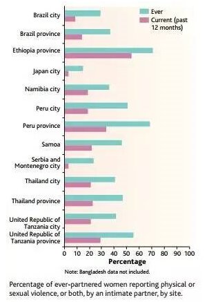 ▲ WHO05年公布的部分国家女性遭暴力情况。