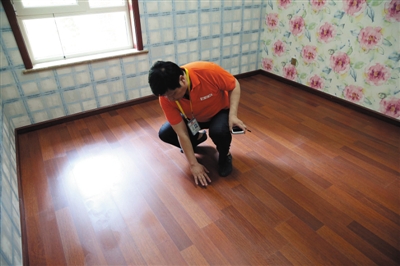 要检查卧室地板是否铺贴到位,需要自己在地板上走,一小步跟着一小步顺时针在卧室走圈,这时会感觉地板与地面有无悬浮感,如果没有,说明地面平整度好,地板铺贴没有问题;如果在某个地方有悬浮感或有“颤悠”的感觉,说明此处地板悬空,地面找平不够。对于地面找平不够造成地板空鼓的地方,需要进行修复。