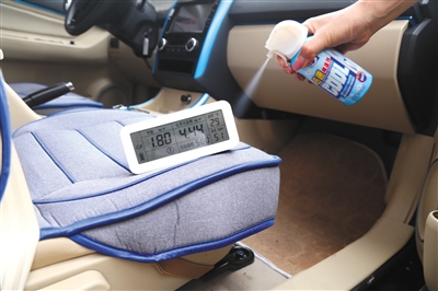 关于快速降温剂的效果,王辉表示降温剂一般是由干冰、酒精或者化学添加剂制成,可迅速挥发,但喷洒过程中,会对皮质车座或者汽车硬件造成伤害。