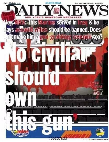 比如《纽约时报》,在枪支问题上支持控枪,在大选上则支持希拉里、贬低特朗普。大苹果城的另一家报纸《纽约每日新闻》立场更鲜明。在奥兰多夜店枪击事件发生后,该报连续两天头版大标讽刺NRA(美国枪支协会)要求加强枪支管控。
