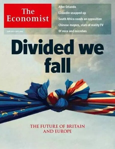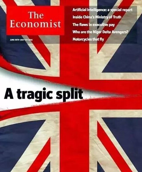 公投前,《经济学人》杂志罕见地在封面说:若脱欧,英国将和欧盟两败俱伤。