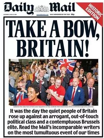 紧随《太阳报》后,《每日邮报》、《每日快报》同样竭力为脱欧鼓与呼。