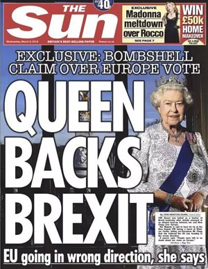 今年3月,据说女王在饭桌上说了句:“给我三个理由我们为什么要留在欧盟?”第二天,《太阳报》就在头版大标中说,“女王支持脱欧!”