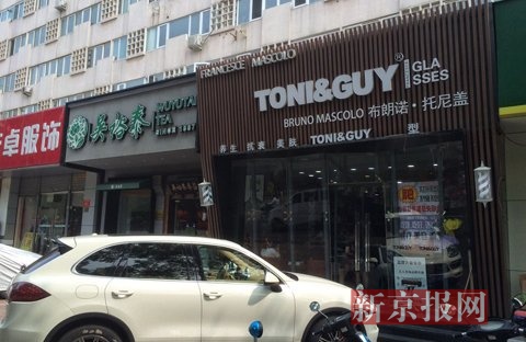 位于中关村南路的涉嫌侵权的理发店店面。新京报记者 王嘉宁 摄