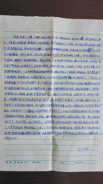 被性侵女生胡云(化名)的遗书。新京报记者 曹晓波 摄