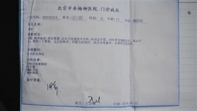 此前的两个月,这位初一女生涉嫌被3人性侵6次。父母带她到北京求医,被诊断为“亚木僵”、“精神障碍”,不得不辍学。