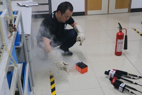 消防进行电瓶车短路试验。消防供图