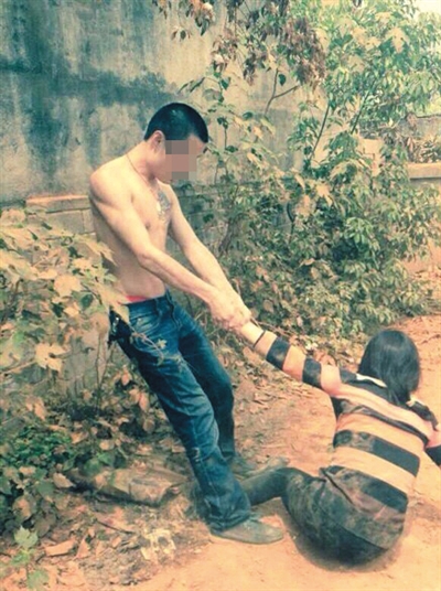 龚雪辉的侄女孙知依然保留着一张照片。那是2014年4月,因为村里集体土地被卖,在开发商动工时与村民发生了冲突。一位精壮的年轻男子赤裸上身,拖拽一位在地上挣扎的妇人。妇人满身是土,坐在地上。