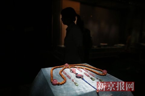 清代琥珀朝珠。新京报记者 侯少卿 摄