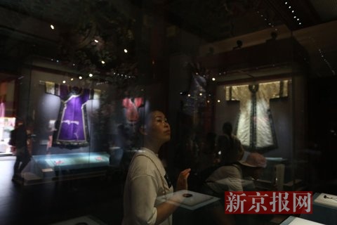 观众在参观清代宫廷女性服饰。新京报记者 侯少卿 摄