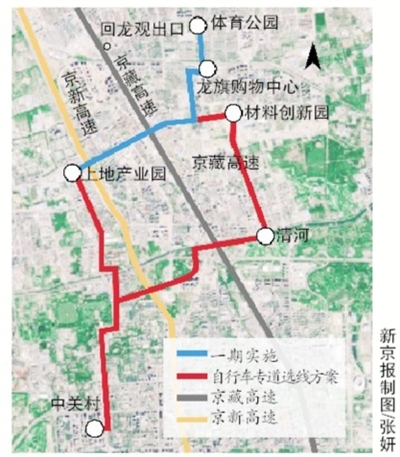 因连接两地的道路中有京藏、京新两条高速阻隔了东西两侧,从回龙观到中关村的10余公里出行,变得较困难。为此,市规划院计划在此建起一套完整的骑行系统。