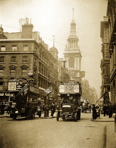 连接英格兰银行与圣保罗大教堂的切普赛德街,是本书中出现频率最高的地名之一。Cheapside源于古英语的市场。我们不妨望文生义,设想路两边(side)的商贩为了招徕顾客,纷纷叫出更便宜(cheap)的价格。今日的伦敦虽仍由商业逻辑支配,切普赛德街却不再嚷扰。19世纪的伦敦人如能穿越至今,“他或许能认出一二典型人物……然而眼前的寂静,以及人与人之间所欠缺的接触与友好的交流,可能会让他有些不知所措”。