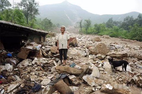 ▲2012年7月25日,房山区三岔村,78岁的杨奶奶站在被泥石流冲毁的院子内。“7·21”中,泥石流带着巨石将杨奶奶家院子及7间房子冲毁。 新京报记者 大路 摄