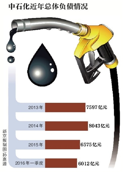 近年来,伴随着油气行业下滑,中石化积累了较高债务。查阅一季报可知,截至3月底负债总额为6012亿元,同期总资产为13977亿元,负债率43%。同时,查阅2015年年报可知,中石化还大幅压缩了投资开支,2016年资本开支1122亿元,同比降低27.4%。
