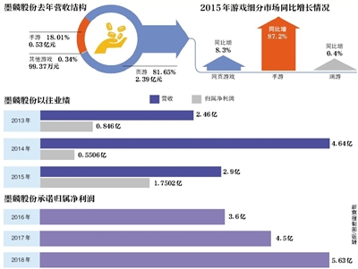 新京报记者查阅交易预案与墨麟股份年报发现,墨麟股份业绩正处于瓶颈期:原页游流水下滑,新游戏流水不足。相比2014年,墨麟股份2015年营业收入与扣非净利润均现大幅缩水。