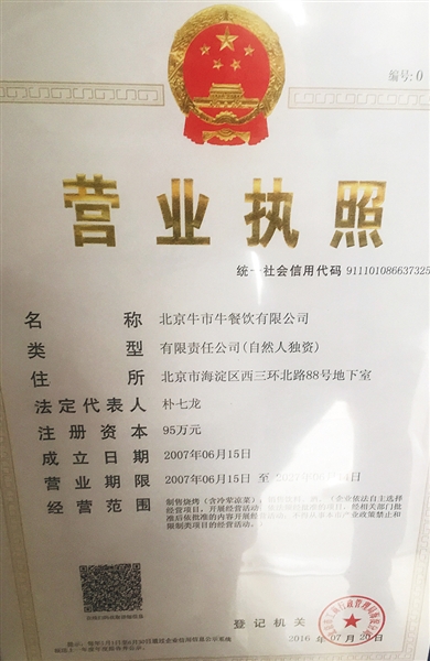 随后,记者来到营业执照上显示的海淀区西三环北路88号地下室,而这里则是牛市牛烤肉航天桥店。