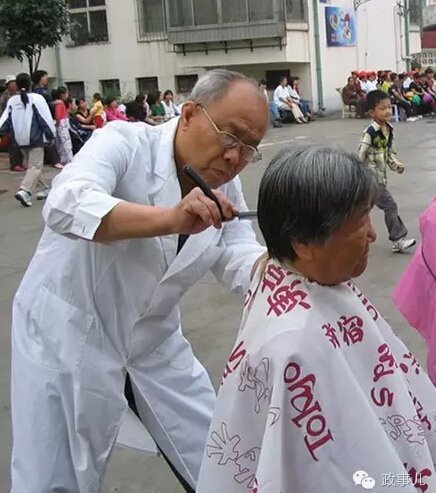 任广振给老人理发