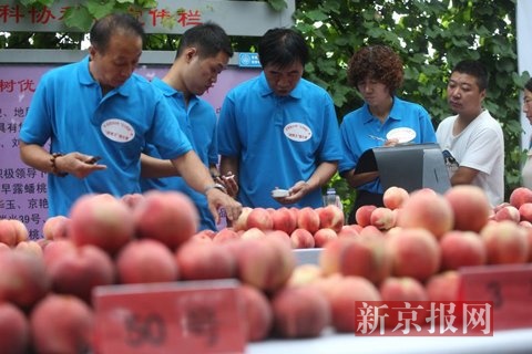 新京报快讯 2016年8月18日,平谷区2016年第二场“甜桃王”擂台赛暨“正大科技杯”“甜桃王”擂台赛在位于平谷区山东庄镇的平谷区果品产业协会基地举办,全区70户果农参与竞争。