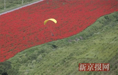动力伞飞行设备飞越动人心魄的花海。