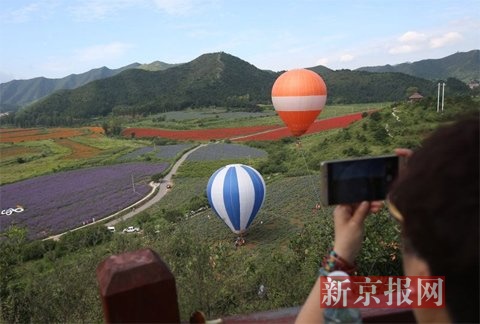 游客可以通过乘坐热气球看花海。