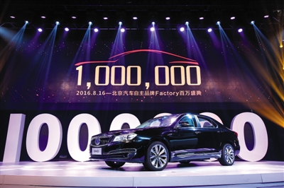 新京报讯 (记者王亚菲)8月16日,北京汽车自主品牌第100万辆车下线,从2011年北汽自主品牌第一辆车下线累计到如今的一百万辆,北汽用了5年时间。随着纯电动高端商务轿车EH400的下线,北汽方面透露,到2020年将实现绅宝品牌全面电动化。