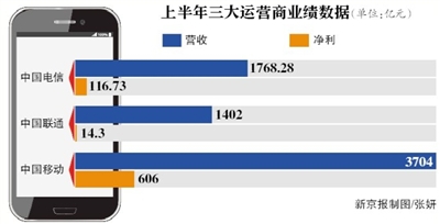 新京报讯 (记者李媛)23日,中国电信公布2016年上半年业绩,至此三大运营商上半年成绩单出齐。中国电信、中国移动均呈现营收、净利双增长,中国联通也将度过最艰难时期。与过去两年相比,三大运营商经历转型期的震荡后,流量经营渐成为主业,业绩显露企稳回升迹象。