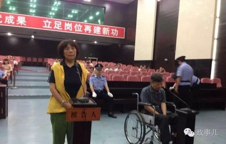 67岁的汪敦如归案前已经退休,由于一场车祸造成8级伤残,当日,其坐在轮椅上被法警推上法庭。