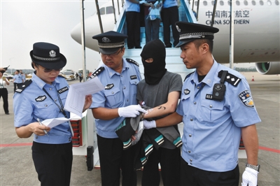 9月2日,广州白云国际机场,公安民警在核对从亚美尼亚回国的电信诈骗犯罪嫌疑人信息。 新华社记者 梁旭 摄