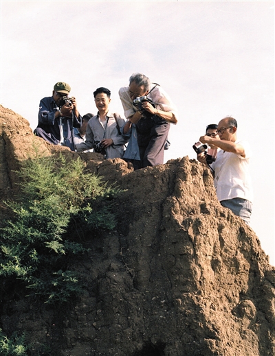 罗哲文等专家们在考察呼和浩特市北乌素图召北阴山脚下的战国赵北长城。