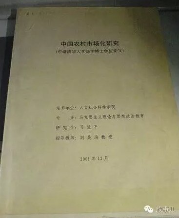 1999年,习近平出版了《现代农业理论与实践》。两年后,他完成了学术专著《中国农村市场化研究》。这是习近平的博士论文。