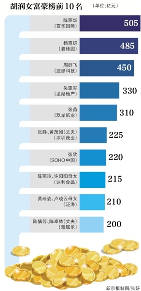 新京报讯 (记者陈鹏)2016年部分城市房价持续走高,房产市场也持续造富。胡润女富豪榜昨日公布,75岁的北京地产女王陈丽华首次成为中国女首富,个人财富达到505亿元。而去年的女首富周群飞由于今年财富缩水,降至第3位。