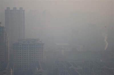 6日,哈尔滨市出现雾霾天气,整座城市笼罩在一片烟雾之中,远处的高楼在雾中若隐若现,如海市蜃楼一般。图/视觉中国
