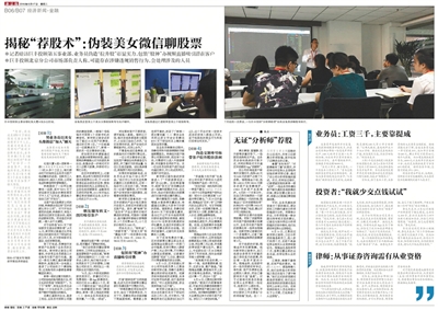 8月17日,新京报曾发表《揭秘“荐股术”:伪装美女微信聊股票》