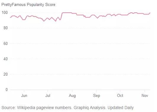 在一个机构做出的受欢迎指数中,米歇尔的得分长期在85分以上,近期更是接近满分的100分。