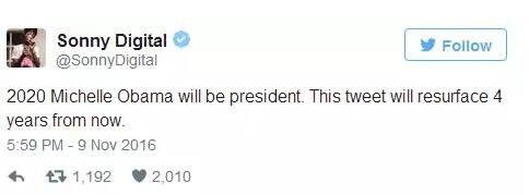 本条推特将见证,2020年,米歇尔将成为我们的总统。