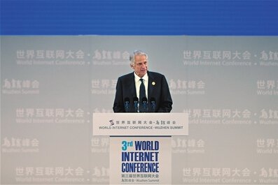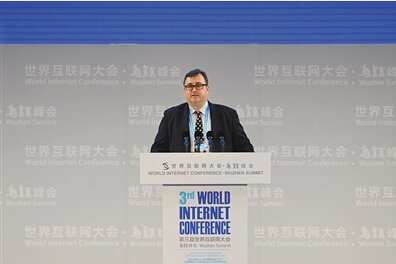 这是我第三次参会,这个会议为我们互联网界做出非常重要的贡献。现在通过互联网我们可以交流知识,在这个大会上我们可以交流我们的想法和知识,从而进行更好地创新。我们领英就希望进一步地扩大这样的网络,我们现在在中国有2500万的用户,我们可以为人们的就业建立商业联系做出贡献,工作技能、企业等,事实上我们帮助他们在工作上进行匹配,我们也帮助企业进行互信。因此,我非常赞赏中国,中国提出非常好的倡议,比如说“一带一路”或者是数字丝绸之路。希望今天的大会让我们达成更好的共识,谢谢!