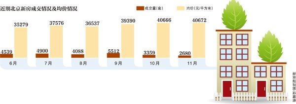 新京报讯 (记者李捷 方王洋)刚刚过去的11月,北京楼市继续9·30以来的降温势头。中原地产据北京市住建委官方数据统计显示,11月全市新建商品房住宅单月成交2680套,环比下调幅度为20%,同比跌幅为32.8%。