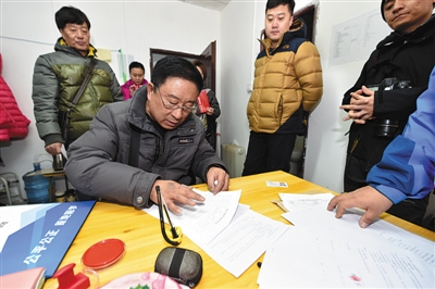 12月6日,居民在北京石景山区北辛安棚改项目南北岔公房选房分中心签约。新华社记者 张晨霖 摄