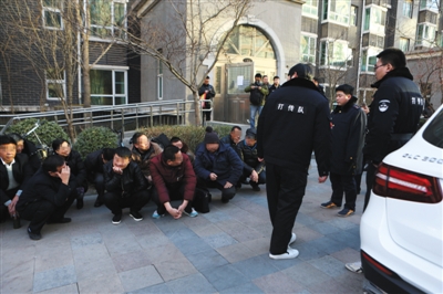 12月15日,三河市对燕郊东方夏威夷南岸小区的“家庭式传销”开展联合打击。传销人员在小区被控制,随后被警方带往派出所接受调查。新京报记者 侯少卿 摄