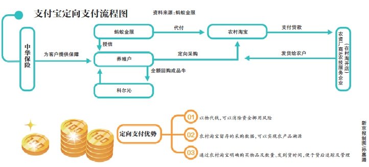 黄超向记者介绍,上述资金使用模式,正是充分挖掘了阿里的电商、支付生态系统。以物代钱,可以消除资金挪用风险,而农村淘宝留存的采购数据,可以实现农产品溯源。此外通过农村淘宝明确购买物品及数量、发到货时间,便于贷后追踪及管理。