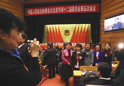 昨日下午,政协北京市第十二届委员会第五次会议开幕,市政协委员们在开幕前合影留念。 新京报记者 王贵彬 摄