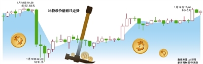 1月18日21时左右,比特币价格突然出现断崖式下跌,其中火币网显示,18日21时,比特币价格还在6155元左右,到22时,已经跌到5731元左右。一个小时下跌424元,跌幅达6.8%。第二天比特币价格开始回升,至1月19日17时,火币网显示的比特币价格为6140元。